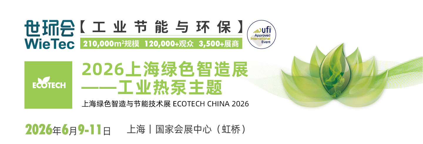 2026年上海綠色智造與節能技術展旗下的工業熱泵主題展將于2026年6月9-11日在上海|國家會展中心(虹橋)盛大啟幕工業熱泵主題展預計規模達10,000平米,將吸引終端領域專業觀眾20,000多名,展會將深度布局行業終端,打造工業熱泵示范項目,助力企業直面新能源、電鍍涂裝、石油化工、電力工廠、紡織印染、食品飲料、污泥干化等領域終端及環保領域用戶。
